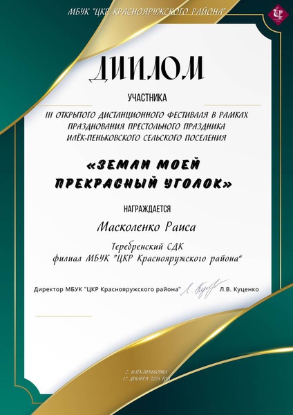 Приняли участие в III открытом дистанционном фестивале «Земли моей прекрасный уголок» в рамках празднования престольного праздника Илёк-Пеньковского сельского поселения. Благодарим коллег Илёк-Пеньковского СДК за организацию фестивалей.