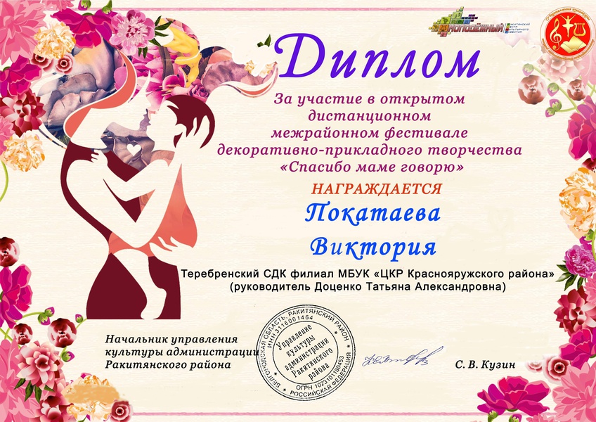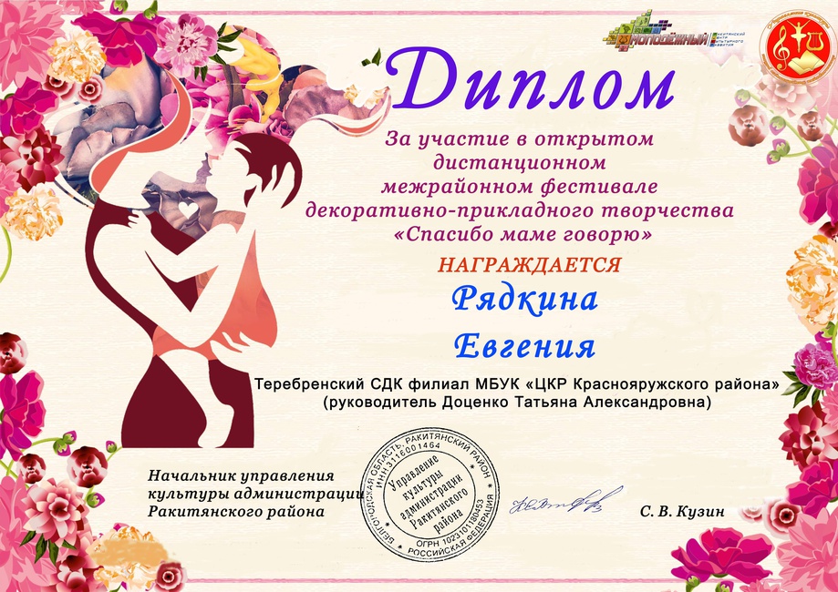 Участники клубных формирований Теребренского СДК приняли участие в открытом дистанционном межрайонном фестивале декоративно-прикладного творчества "Спасибо маме говорю" Бобравского ЦКР